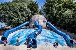 - de opvallendste attractie is de grote blauwe bol met verschillende glijbanen. Eigenlijk een 'octopus' waar je op kan klimmen.