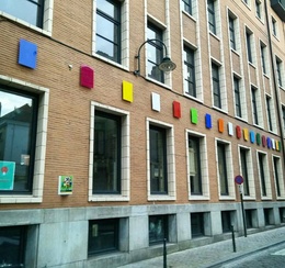 Op deze gevel zie je een kunstwerk van kunstenaar David Helbich, genaamd 'Colors of Shade'. Het fleurt niet alleen de straat op met deze kleurrijke plakkaten, maar klaagt zo ook de luchtvervuiling in de stad aan. Huh? Hoe dan?
